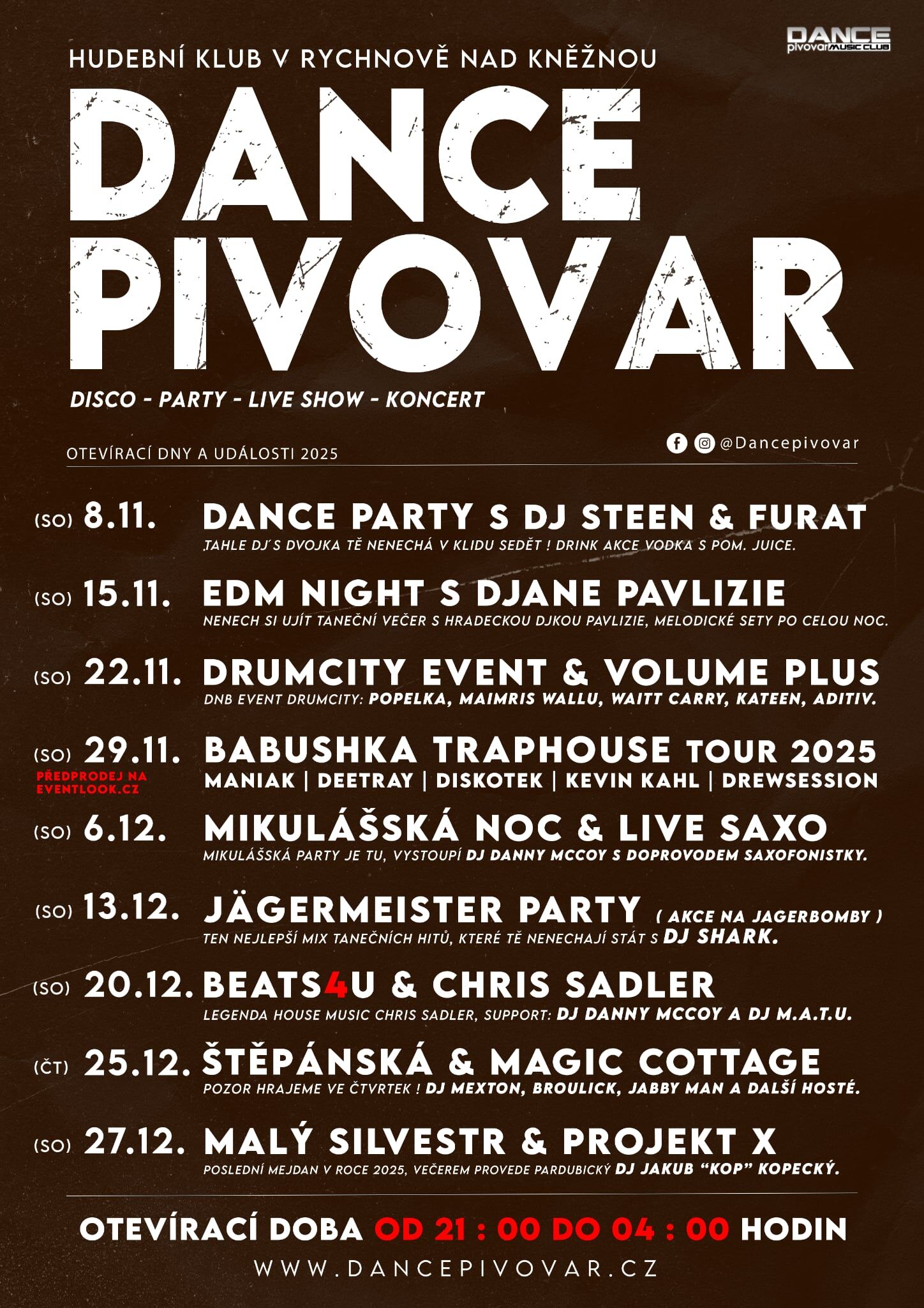 Rychnov nad Kněžnou má jednu z nejrozmanitějších zábavných scén. Od nejrůznějších hudebních žánrů, různorodou variací reprodukované hudby, živých koncertních vystoupení a celou řadu atrakcí v podobě tanečních programů pro hosty. Zábava a vzrušení je přeci to co zde hosté hledají. Co se týče rozmanitosti taneční scény, jen málo klubů má takto postavený hudební koncept, technické zázemí a podiové prostory. Ať již jste fanouškem house/electro hudby, klasického rocku, popu, disco ale třeba i alternativních žánrů, v Dancepivovar si najdete to svoje.